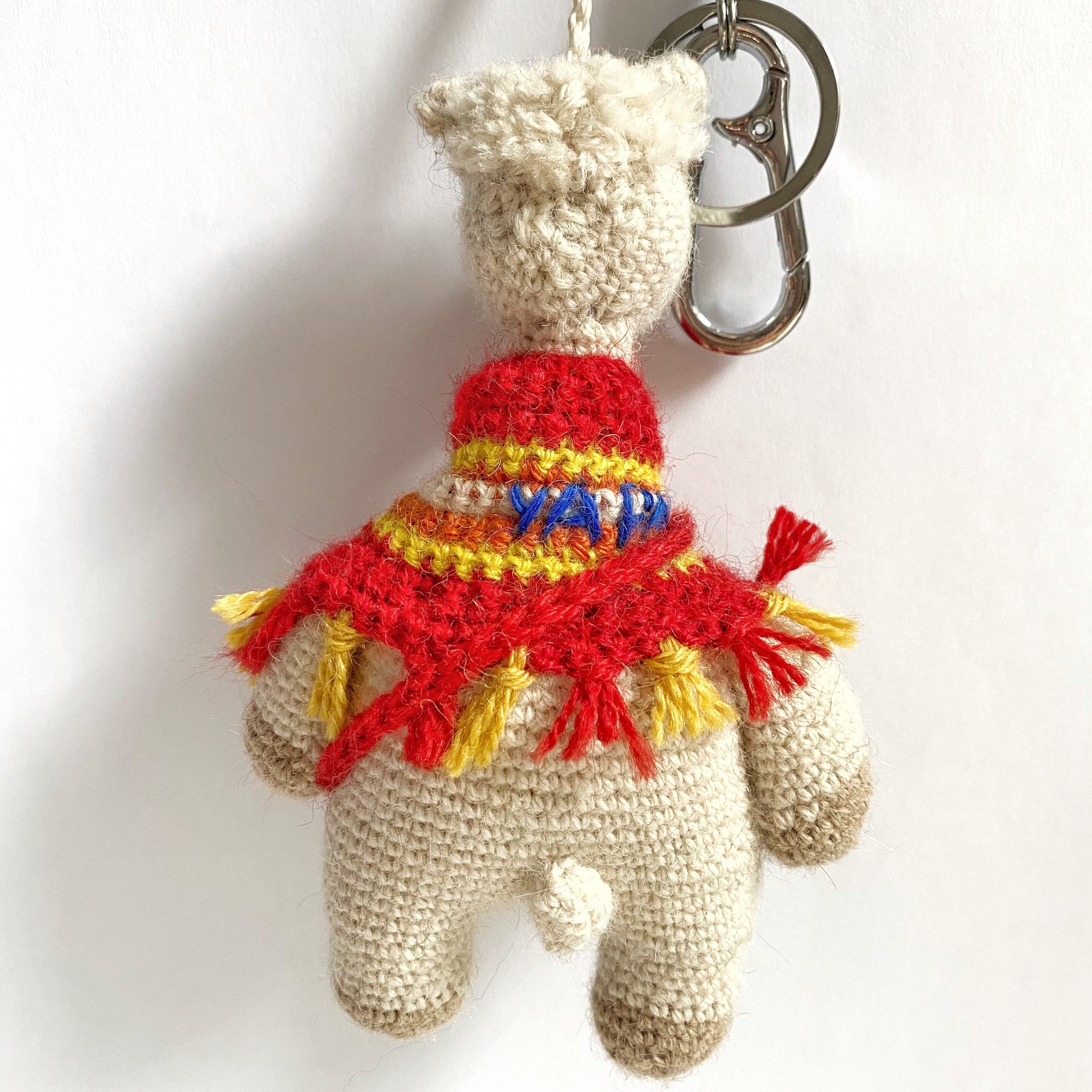 Llavero y dije para bolso de alpaca de crochet Aurora
