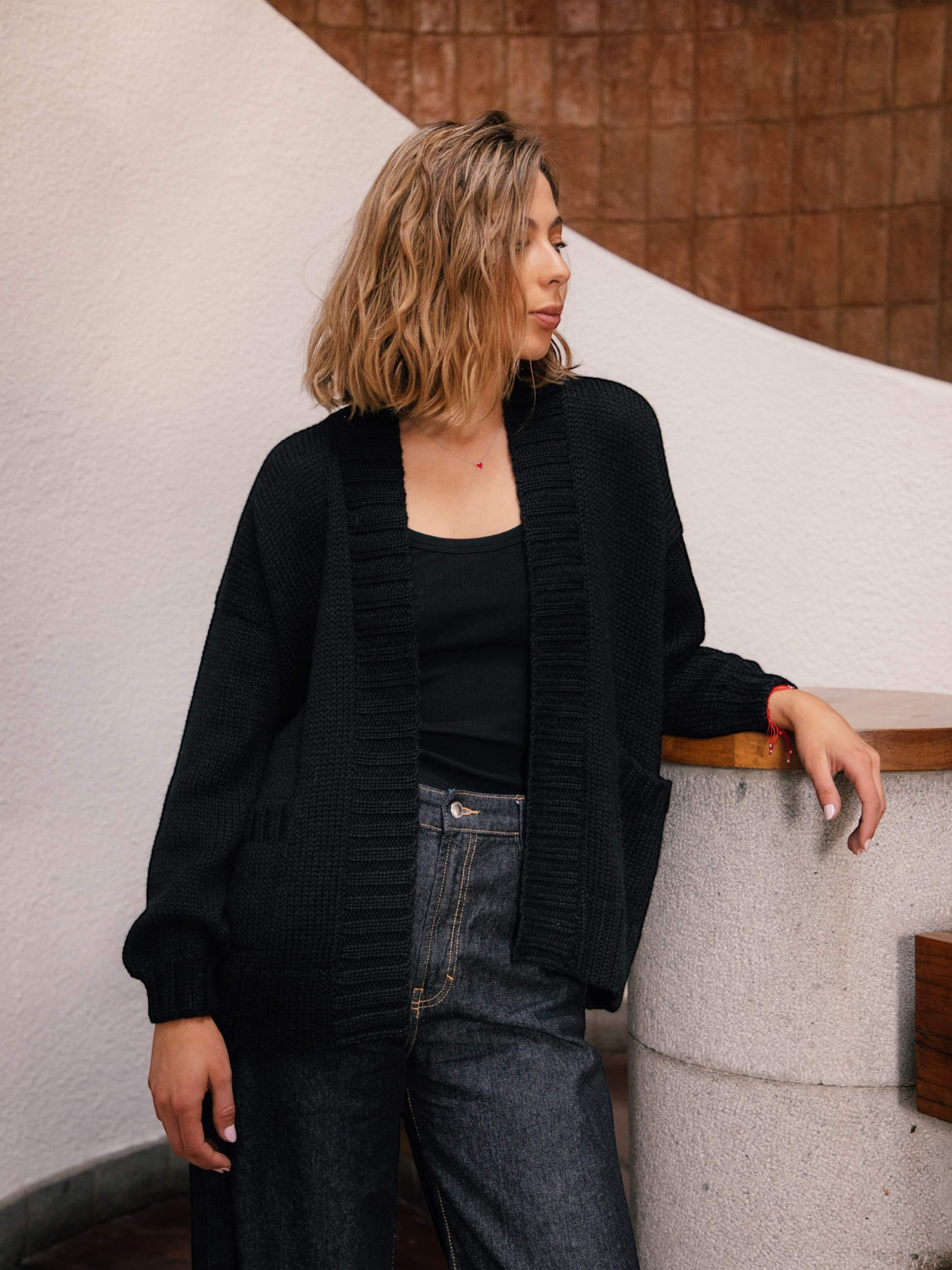 Nuestro cárdigan grueso Amanda combina a la perfección estilo y comodidad. Este divertido cárdigan de lana de alpaca bebé se convertirá en tu favorito de la temporada. Fácil de combinar, te mantendrá abrigada y a la moda.
